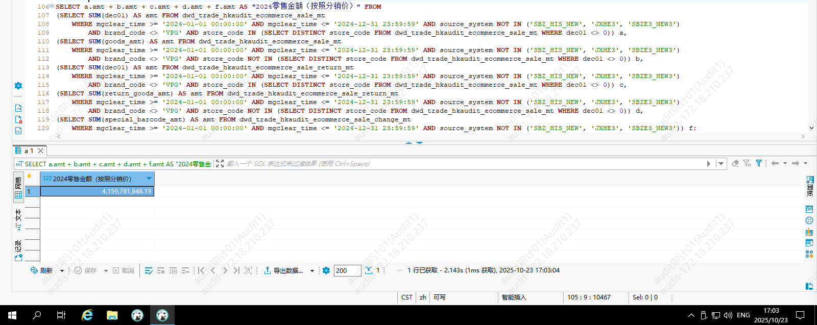 线上零售金额核对
