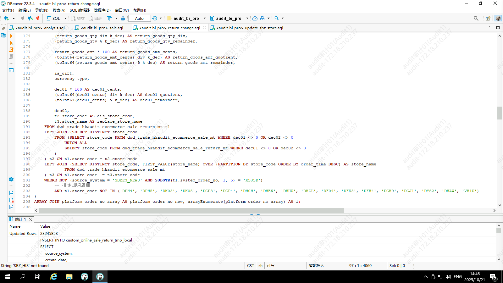 退销数据