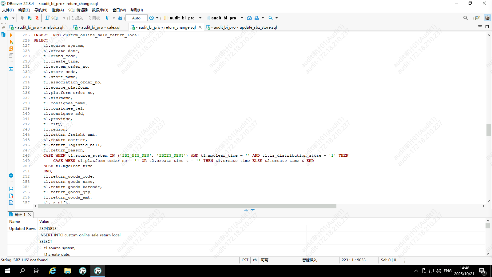 退销数据