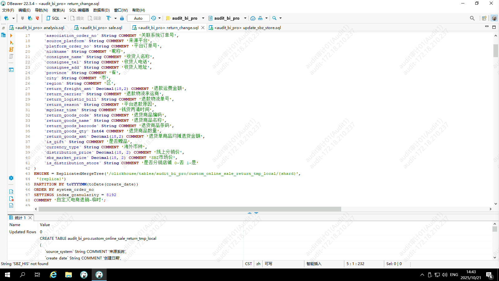 退销数据