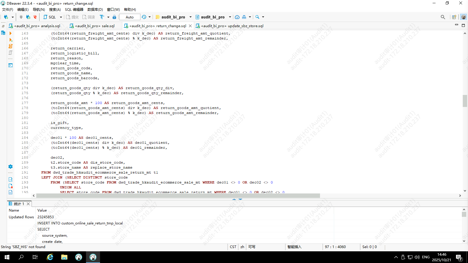 退销数据